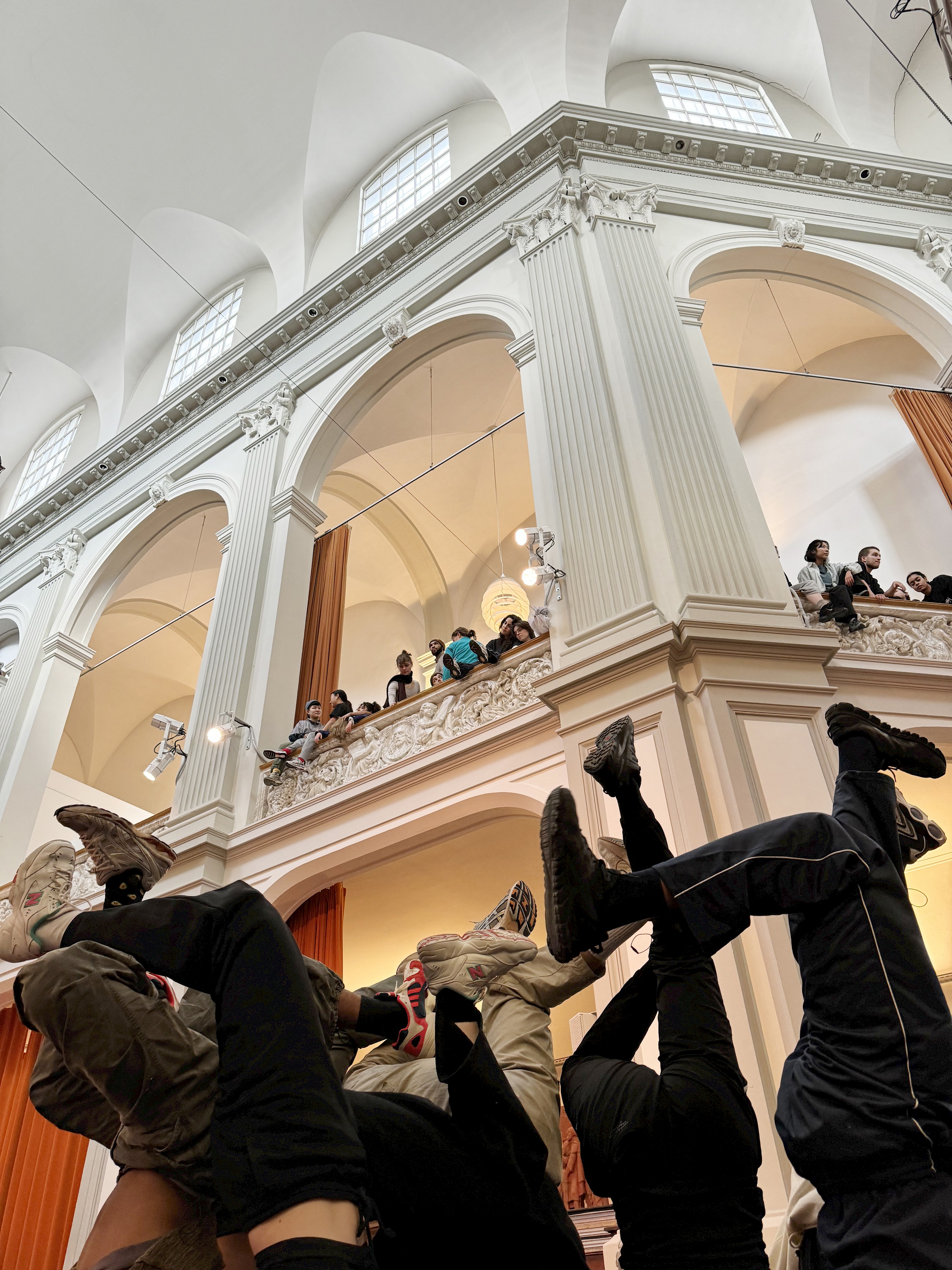 Andreas Hannes brings forward the two interrelated practices of skipping (as in skipping down the street) and warping (to deviate from the original direction or course). Together with vocalists Annelie Koning, Sanem Kalfa, Līva Dumpe and Felicity Provan and the dancers of ECD3, they attempt to find the potential of dance and sound between different spaces, desires, histories and urgencies. Circulation, direction, combination and gravitational pulls are explored for folding and unfolding perspectives of oneself, the viewer and the environment. Relay Sport is a proposal for practicing multiplicity and care as well as openness to change and be okay with it all.