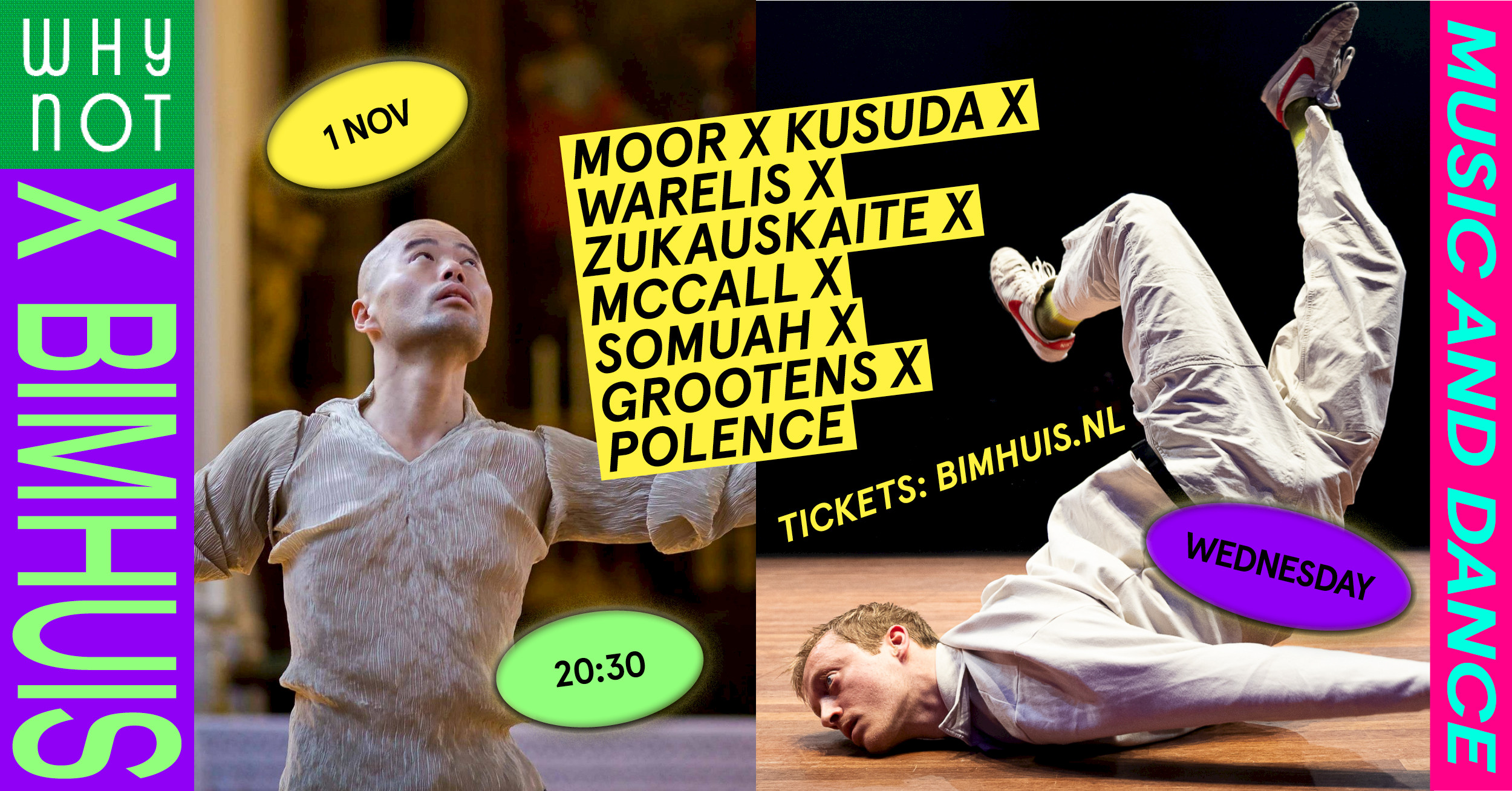On 1 November, WhyNot and BIMHUIS will be back with a special mix of innovative music and dance. Just like previous editions in which dance and music came together, this evening promises to be unforgettable. Eight renowned and emerging musicians and dance artists embark on an adventure together in four fully improvised duets. The artists are (almost) all working together for the first time, but along the way they have developed their own powerful language and show us the art of 'being in the moment'. The duos improvise and co-create at the cutting edge to surprise each other and all of us.
